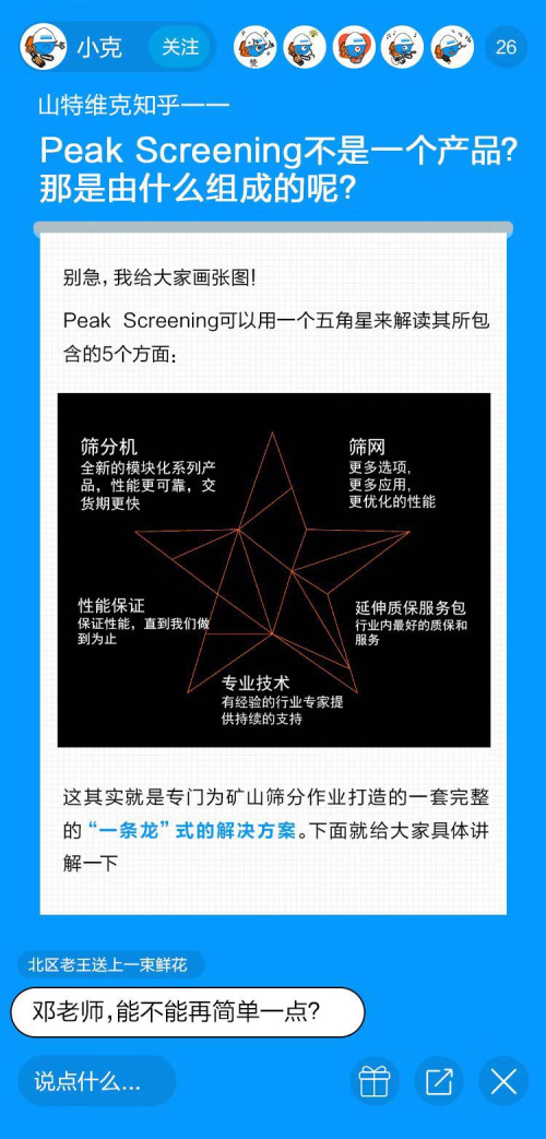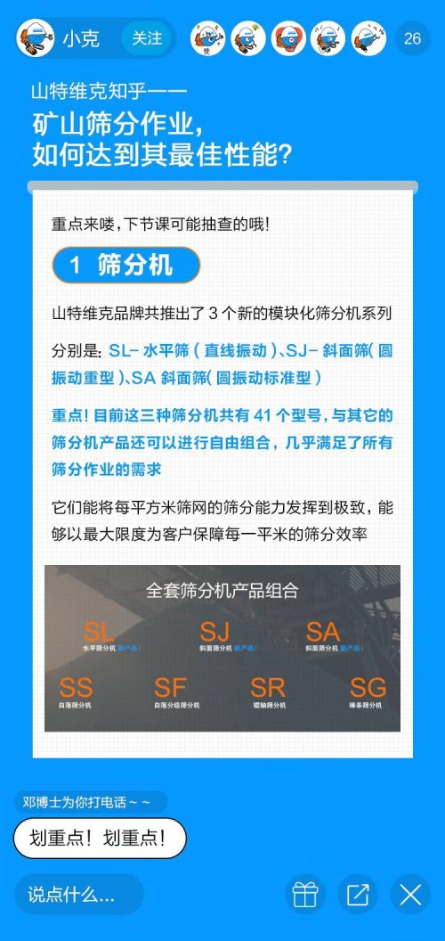 今天的直播課就請他,為大家講講礦山開采中一個重要環節——篩分。要知道篩分性能不佳會給開采商帶來不可預估的損失,比如成本的增加、利潤的下降,那你知道如何解決礦山篩分作業中的痛點,從而實現產能最大化么?今天我們就以山特維克Peaking Screening篩分解決方案為例,看看如何做到「越篩分之顛」!
